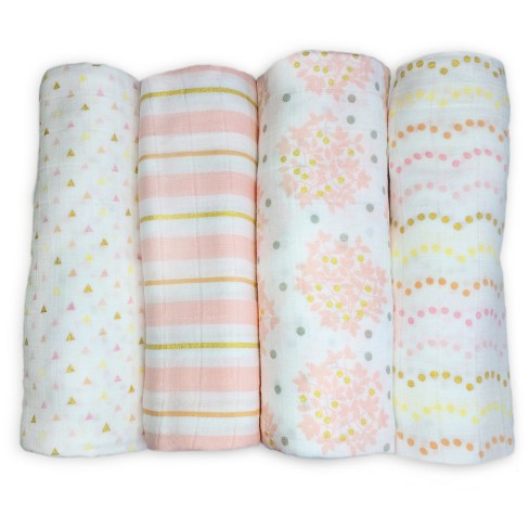 Swaddledesigns Cotton Muslin Swaddle Blankets Heavenly Floral Shimmer 4pk Pink Target