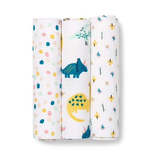 Muslin Swaddle Blanket Dinos Warm 3pk Cloud Island Pink Blue Target