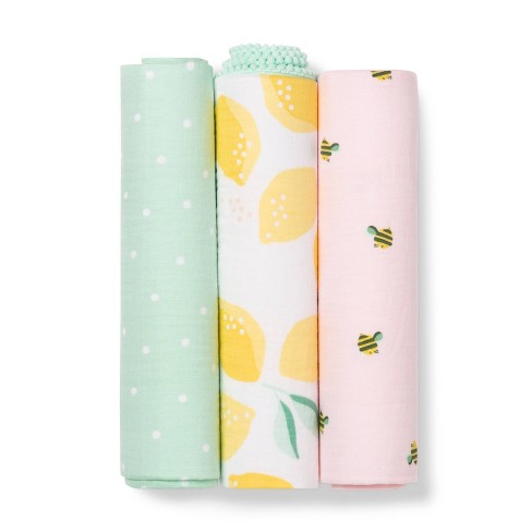 Muslin Swaddle Blanket Honeybee 3pk Cloud Island Pink Yellow Target