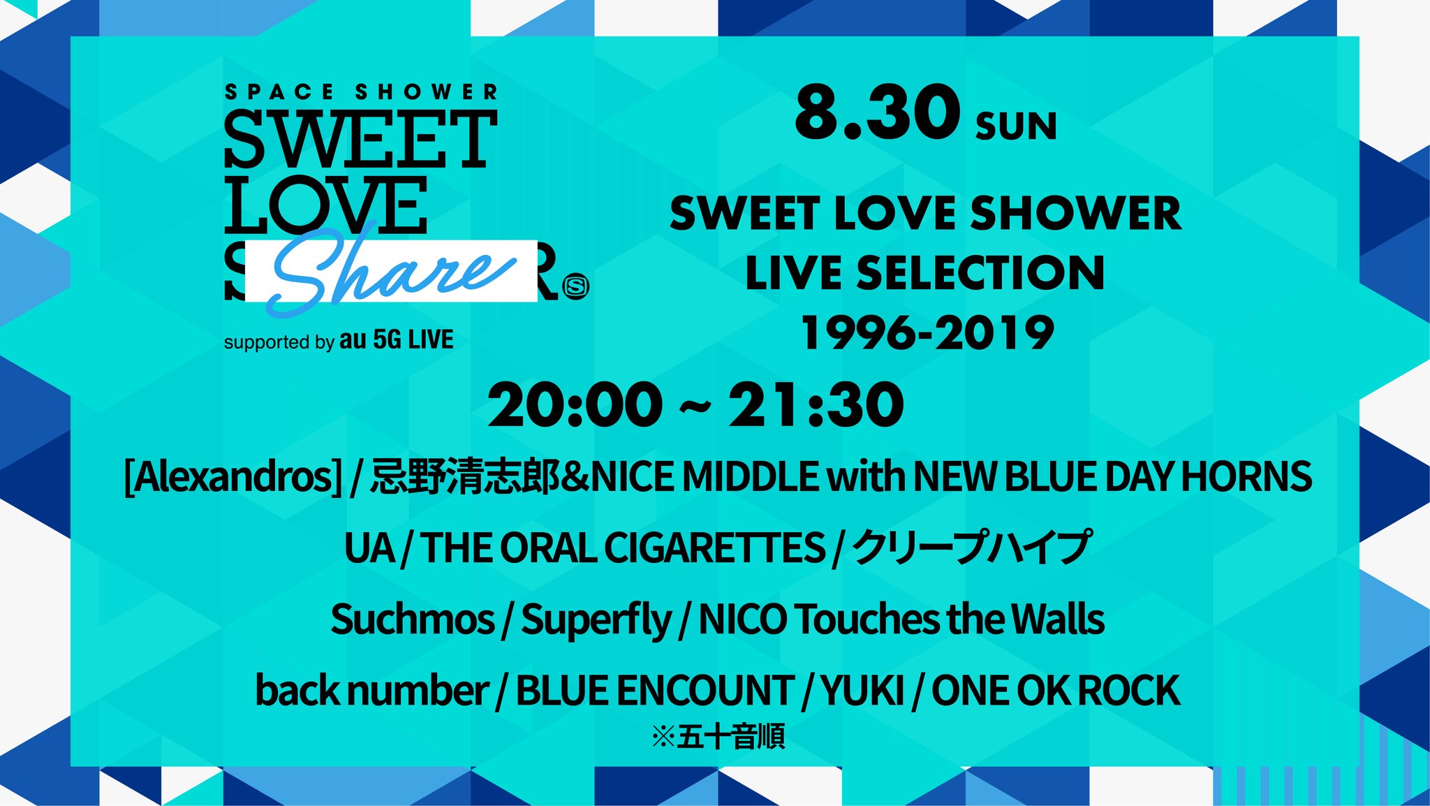 Sweet Love Shower On Twitter Sweet Love Shower Live Selection 1996 2019 20 15 予定 目安です At Space Shower Tv Studio Ch Artist Superfly Back Number Blue Encount Yuki ラブシェ 視聴 Https T Co Deucgwnlfu Https T Co Xgmrtr8mz8