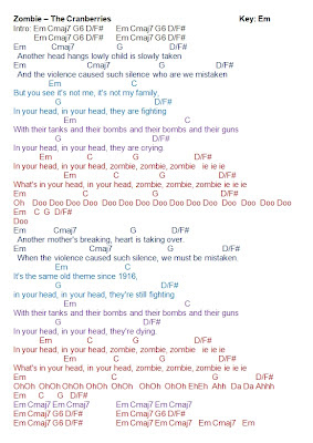 Cranberries Zombie Sheet Music Easy For Guitar Solo Chords