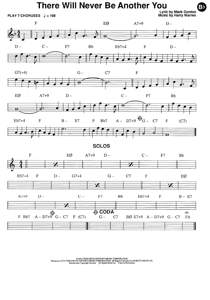 There will never be another you author. 155 bpm 4 chorus. The bb 7 eb7 abmaj7 is a ii v i in ab and so improvising from the ab major scale pitch collection is appropriate.