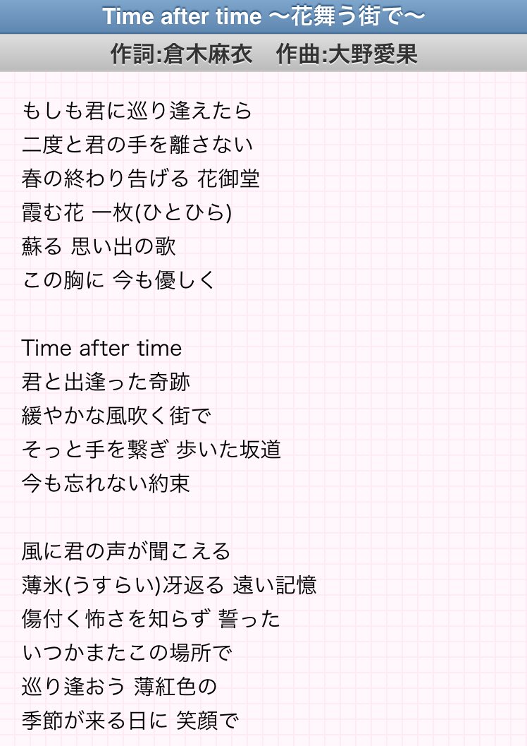 Time After Time 花舞う街で Theater Version 歌詞倉木麻衣 Mojim Com