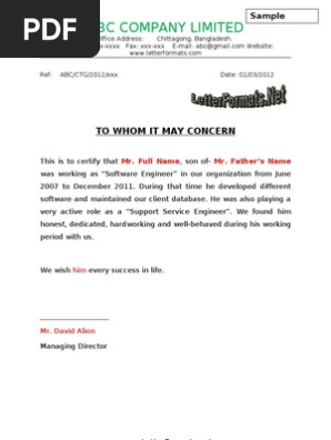 To Whomsoever It May Concern Experience Certificate Format Information Technology Cyberspace
