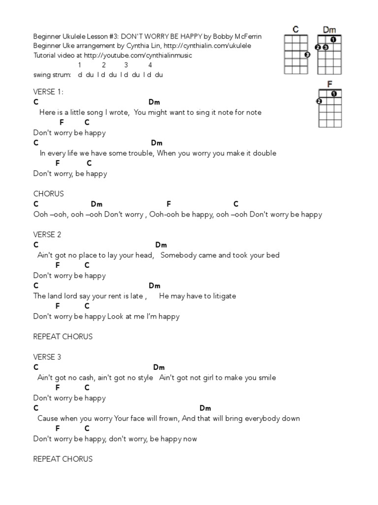 Don T Worry Be Happy Beginner Ukulele Chord Chart Pdf Song Structure Songs