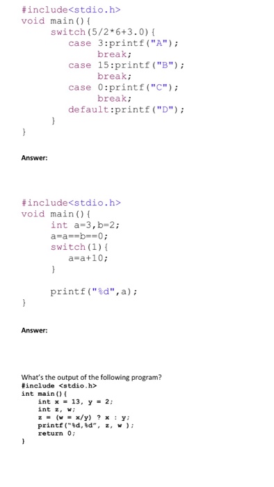 Solved Include Void Main Switch 5 2 6 3 0 Case 3 Pr Chegg Com