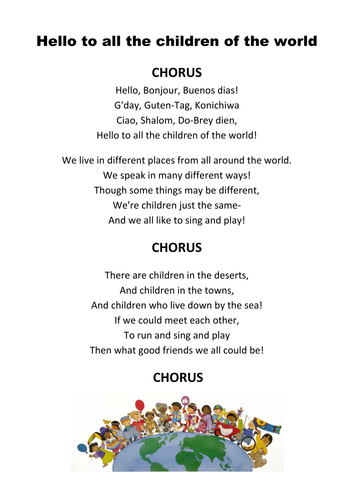 Hello To All The Children Of The World Song Teaching Resources