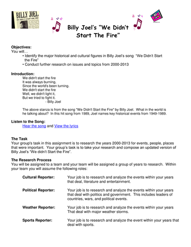 We Didn T Start The Fire Billy Joel Teaching Resources