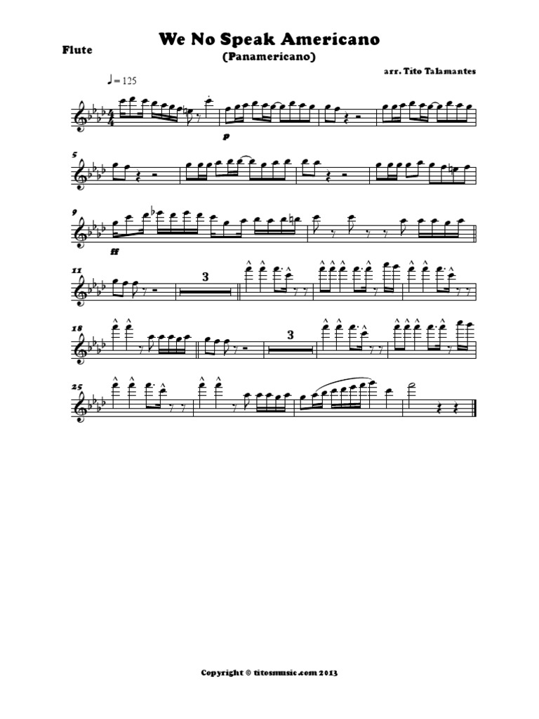 We No Speak Americano Piano Sheet Music Onlinepianist