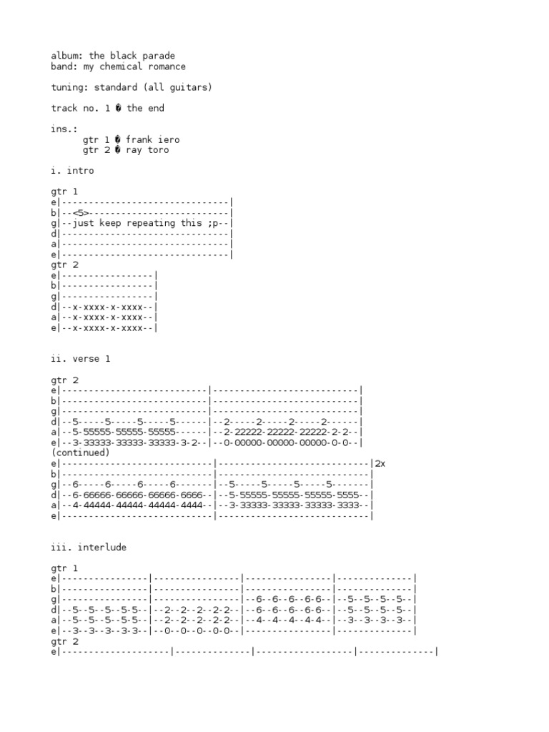 My Chemical Romance The Black Parade Album Guitar Tab Song Structure Musical Forms