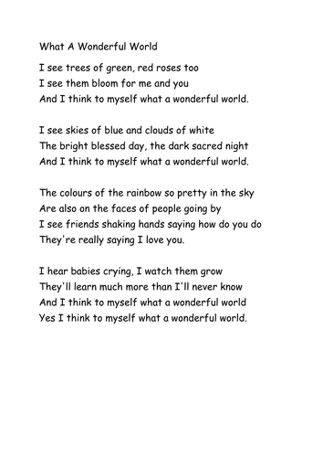 English Esl What A Wonderful World Worksheets Most Downloaded 23 Results