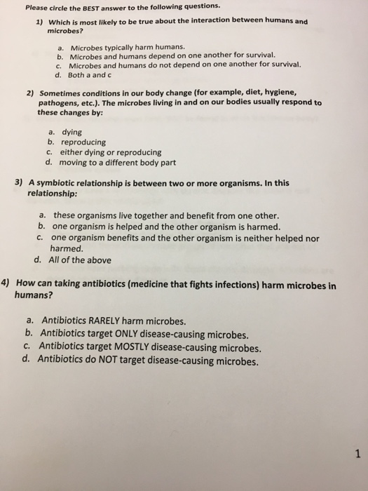 Solved Please Circle The Best Answer To The Following Que Chegg Com