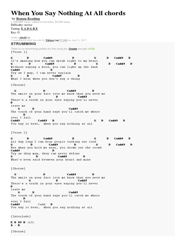 When You Say Nothing At All Chords Song Structure Vocal Music Besplatnaya 30 Dnevnaya Probnaya Versiya Scribd